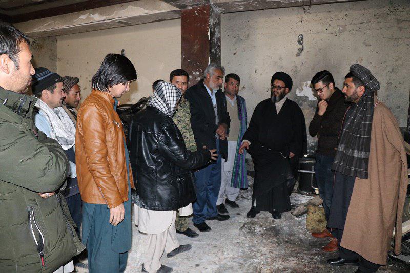 (پیامها و دیدارها | )بازدید حسینی مزاری و هیئت همراه از محل حادثه تروریستی ۷ جدی در کابل