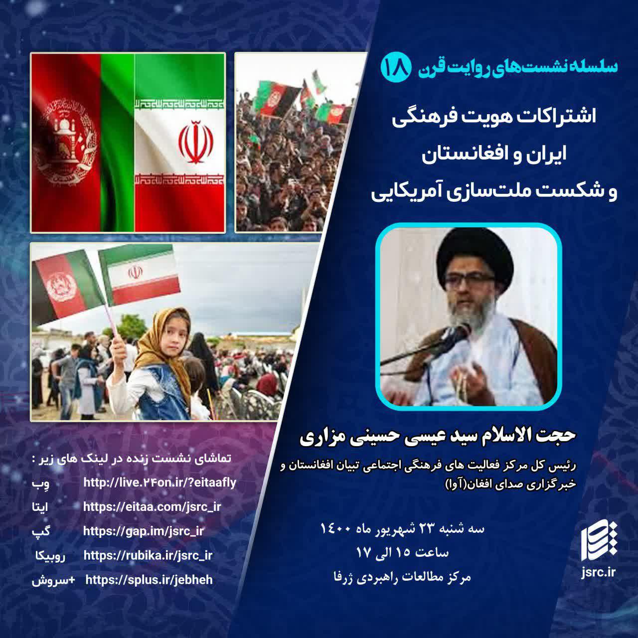 خبرگزاری صدای افغان(آوا) ـ تهران: عصر سه شنبه(۲۲سنبله/شهریور) نشست مجازی پیرامون “اشتراکات هویت فرهنگی ایران و افغانستان و شکست ملتسازی آمریکایی” با حضور و سخنرانی حجت الاسلام والمسلمین سید عیسی حسینی مزاری، رئیس کل مرکز فعالیتهای فرهنگی اجتماعی تبیان و خبرگزاری صدای افغان(آوا) از سوی مرکز مطالعات راهبردی”ژرفا” به صورت پخش مستقیم از سایت این […]