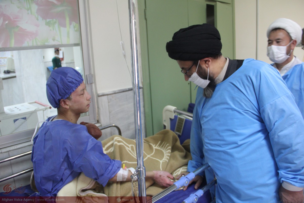 تصاویر/ عیادت حسینی مزاری و هیات همراه از مصدومان حمله تروریستی هفتم جدی به مرکز تبیان و خبرگزاری آوا در کابل- بیمارستان امام رضا(ع) مشهد مقدس
